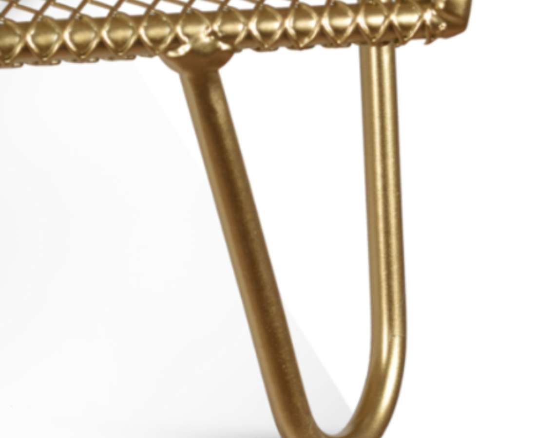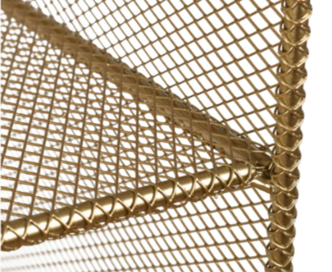 chevet en grillage doré pouvant être utilsé en chevet et aussi en bout de canapé. Elle se positionne partout, également dans un bureau.