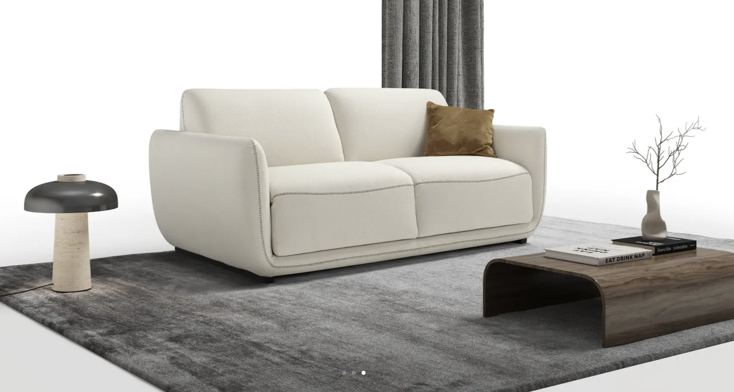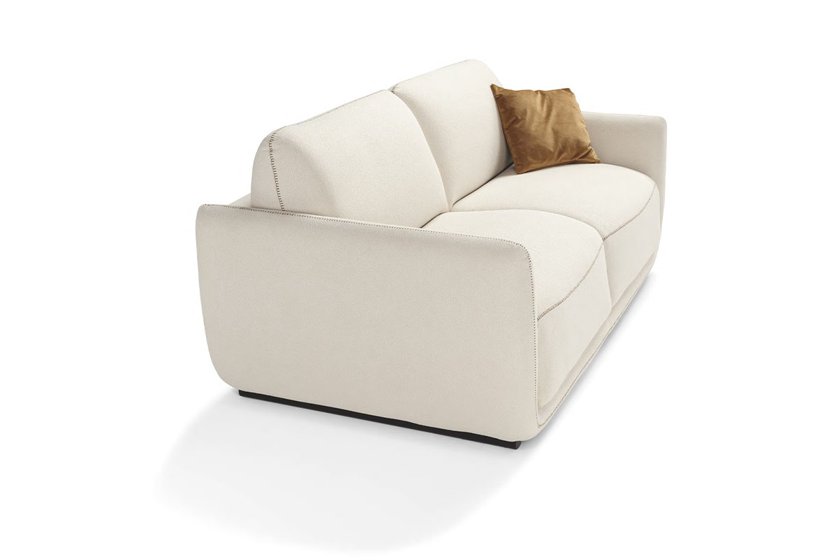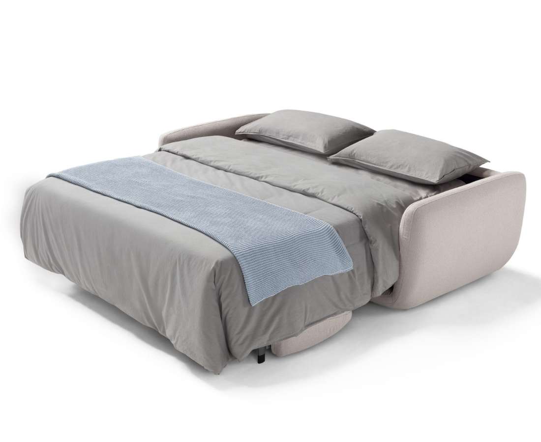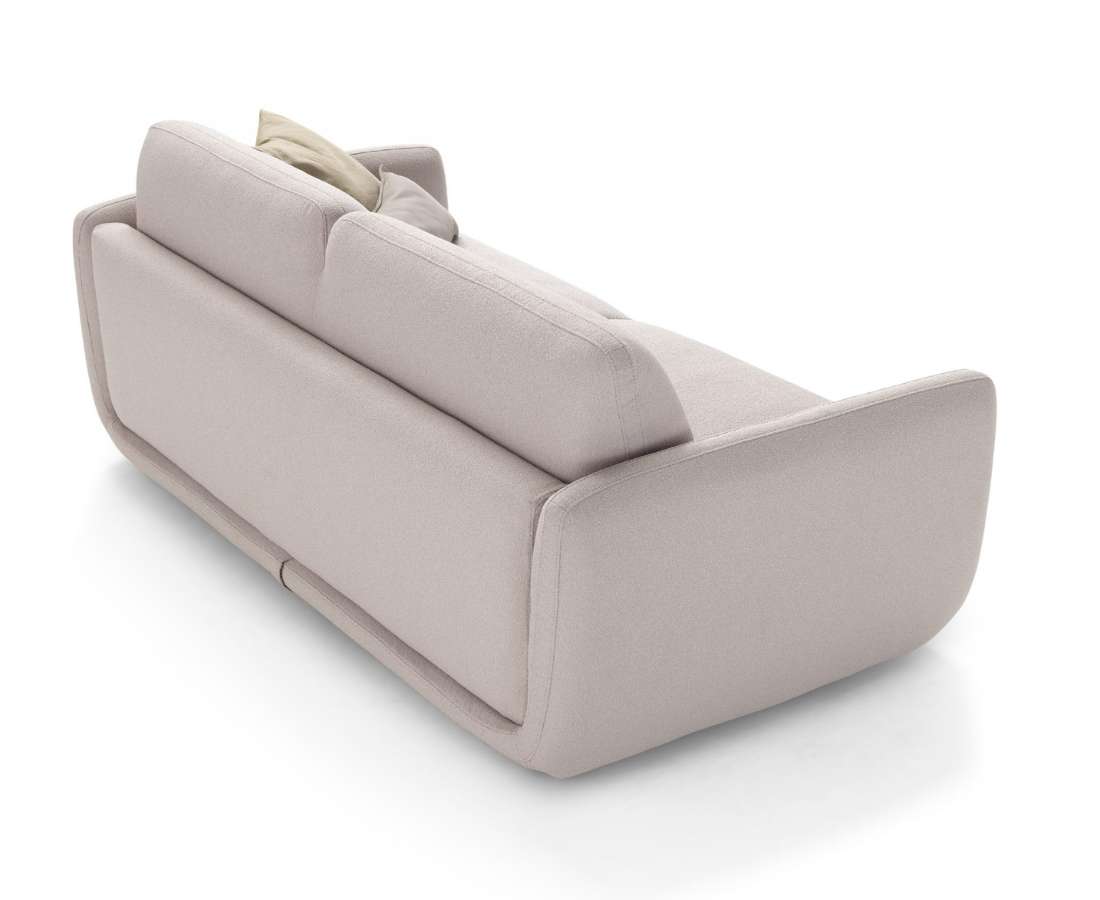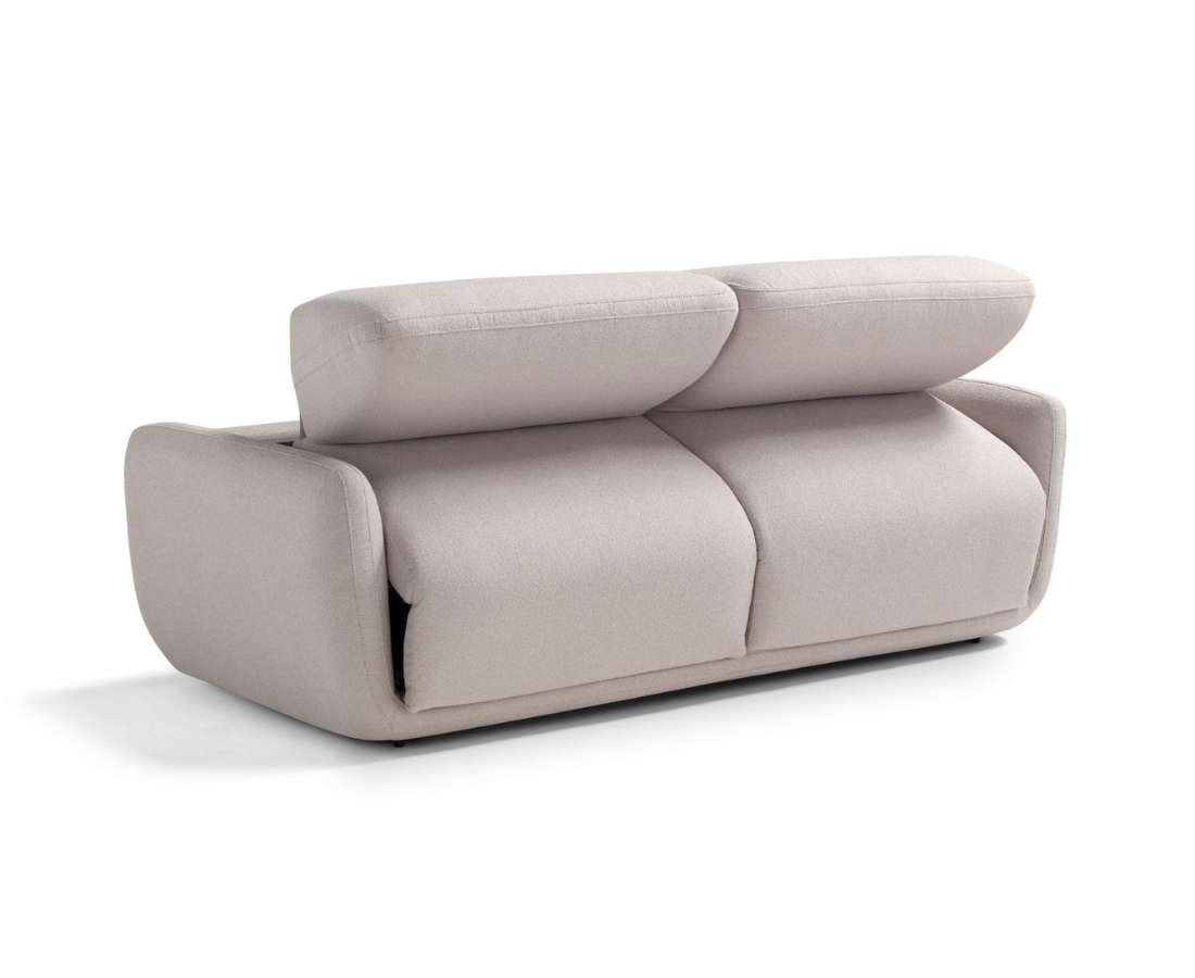 L’ouverture s’effectue par un seul mouvement frontal de rotation du dossier. Le passage de la position canapé à la position lit ne nécessite aucun retrait des pièces assemblées et/ou du rembourrage du produit.