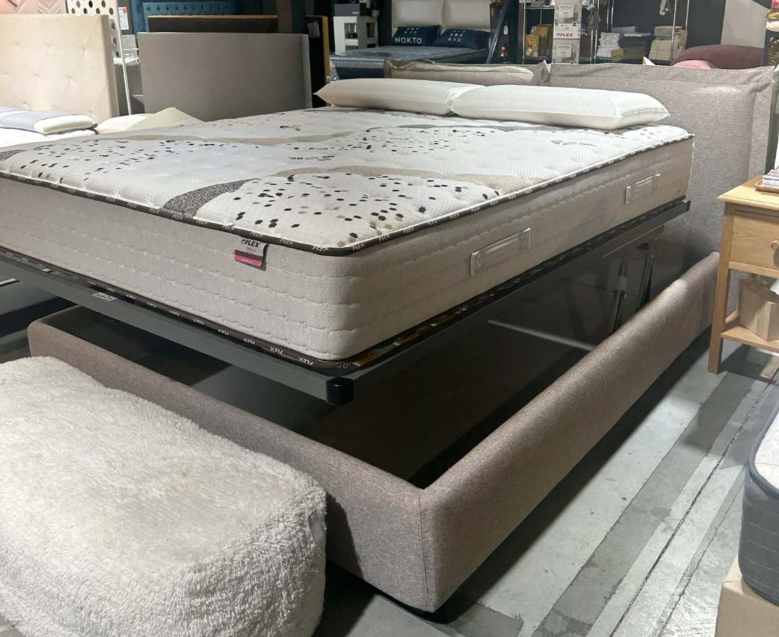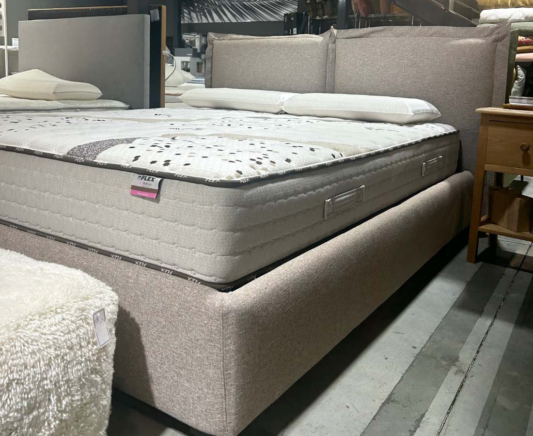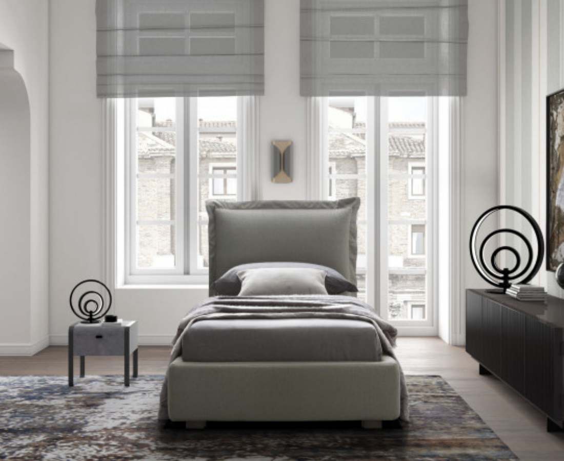 - SOMMIER : Modèles de sommiers FLAT : structure en acier 40×30 revêtu de poudre époxy gris anthracite avec lattes de bois.