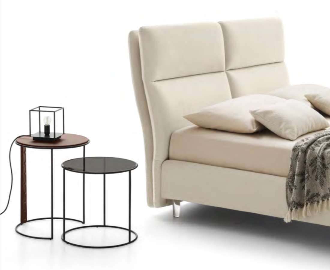 Tête de lit et cadre de lit en polyuréthane indéformable densité 30 Kg/m3 revêtus en Tecnoform. - Revêtement: Tissu déperlant, lavable car complètement déhoussable.