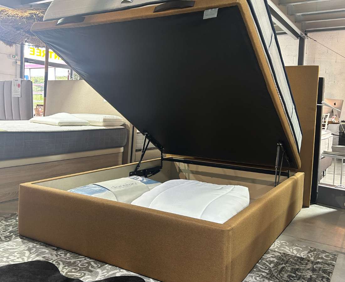 Le lit coffre Mont-Blanc 39 comprend des détails qui font la différence. Dans l’image, il inclut l’option d’ouverture verticale et horizontale. Fabriqué avec des matériaux de première qualité et un couvercle premium breveté parfaitement combiné à un design unique qui offre élégance et robustesse. Le Mont-Blanc 39 est un lit de qualité supérieure avec une série d’options configurables qui faciliteront votre quotidien.