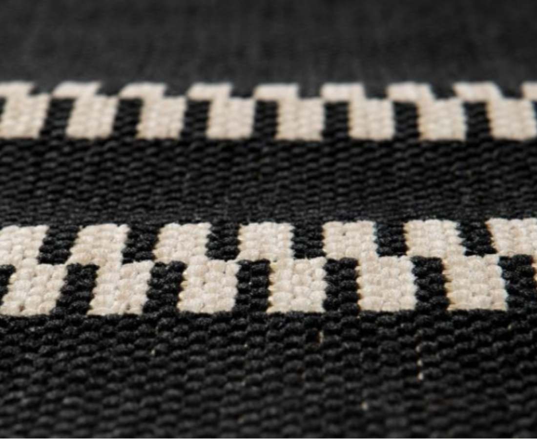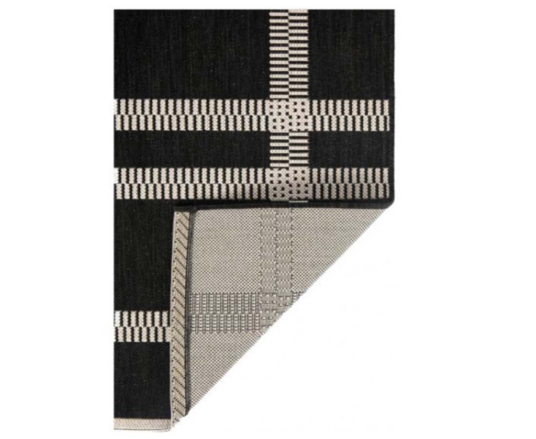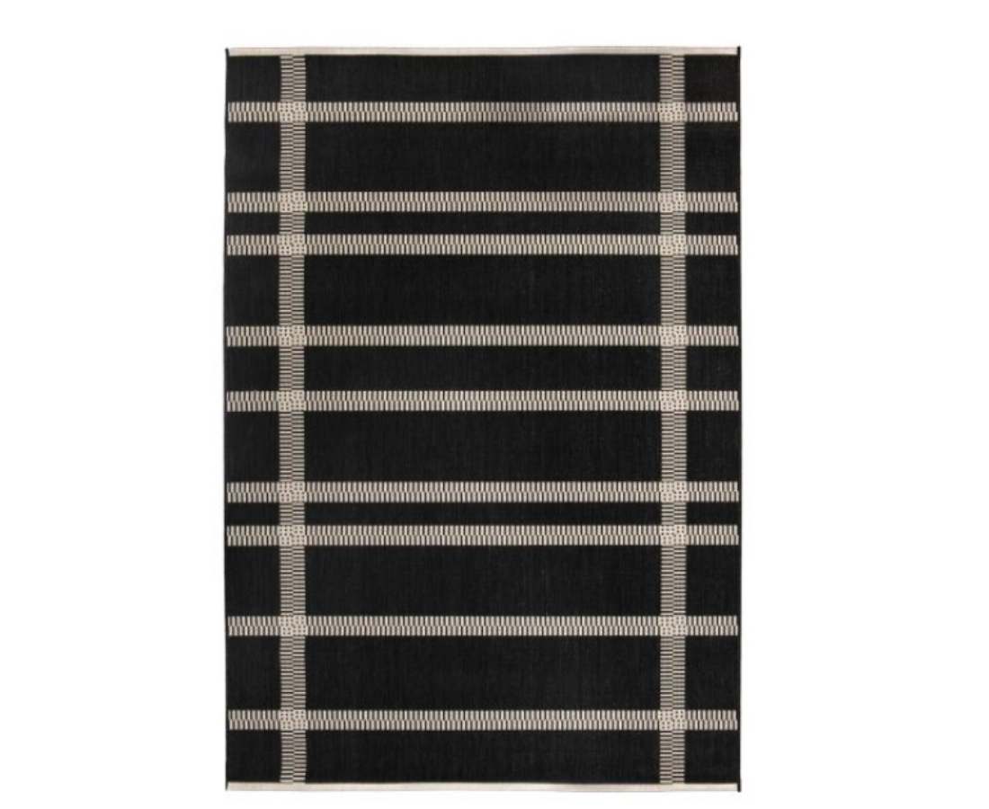 Notre tapis PAOMIA graphique au motif à rayures qui décorera les sols de vos espaces extérieurs avec style et modernité.